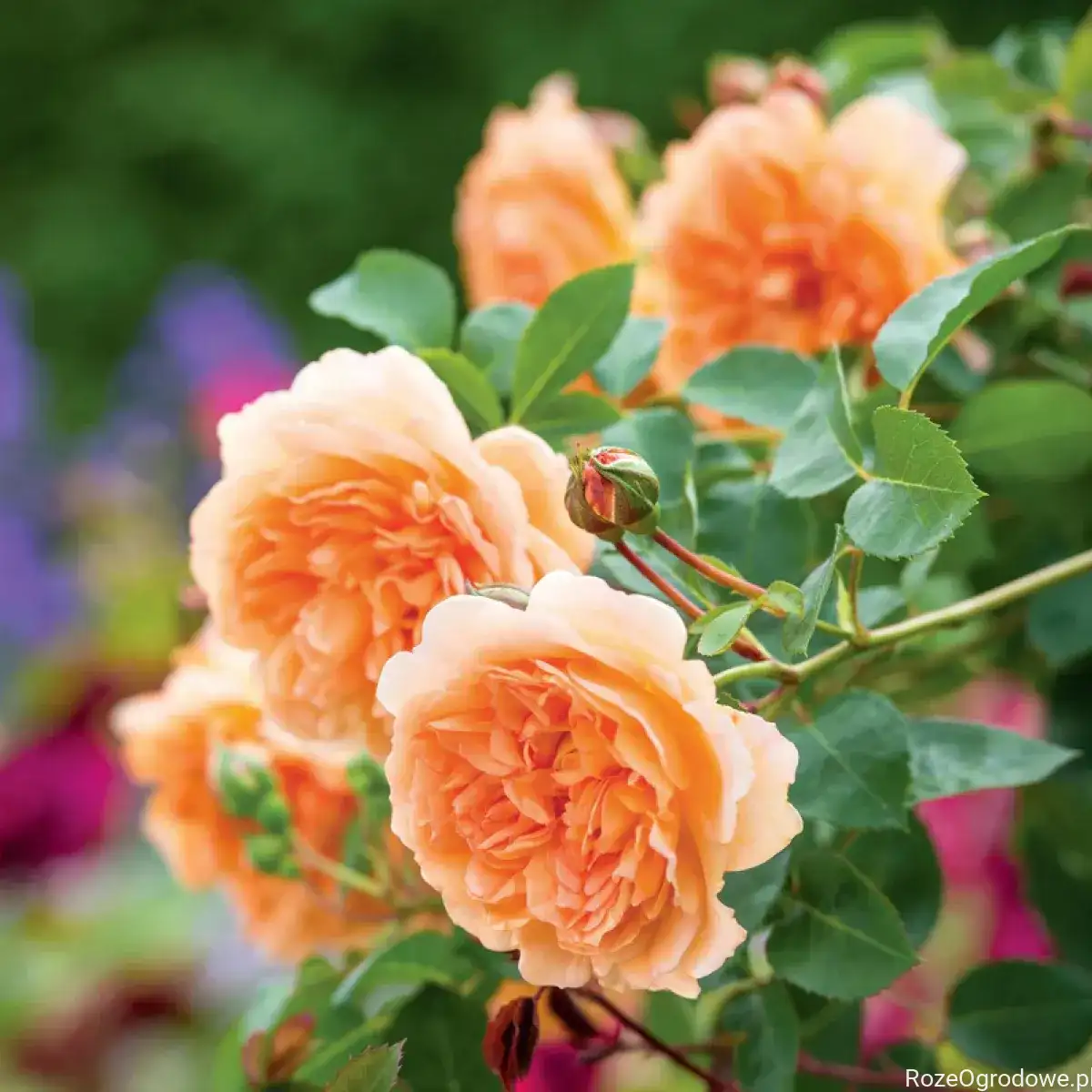 Jednak najciekawsze są jej angielskie kwiaty o mocnym odcieniu morelowo-pomarańczowym, delikatnie blednące na brzegach. To rzadka cecha u róż angielskich o pełnych kwiatach. Pąki z czerwonymi końcówkami stopniowo otwierają się, ukazując duże rozety. Są odporne na uszkodzenia spowodowane deszczem.