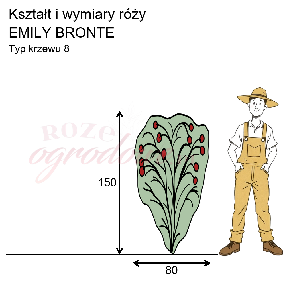 Róża Emily Bronte zalicza się do róż parkowych, ze względu na krzaczasty pokrój rośliny. Rośnie szybko, jest bardzo zdrowa i odporna na choroby grzybowe. Młode pędy, wypuszczone wiosną są czerwone, bardzo ozdobne, natomiast liście błyszczące, jasnozielone.