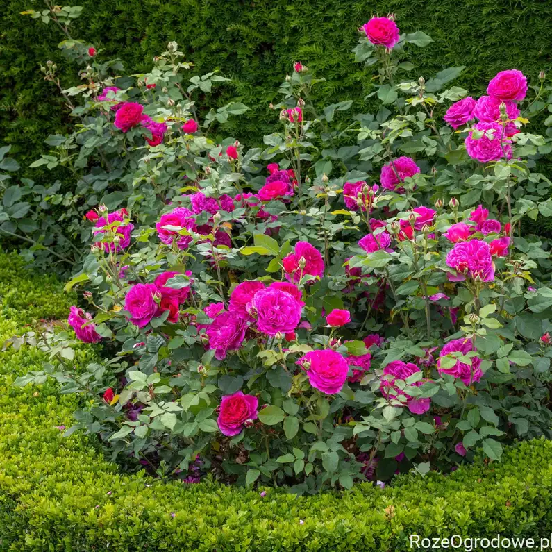 Zwraca uwagę dużymi, pełnymi kwiatami o intrygującym kolorze różowo- purpurowym. W czasie przekwitania zewnętrzne płatki jaśnieją. Róża ta dobrze się krzewi, tworząc zgrabne, szerokie, wyrównane rośliny. Dzięki temu dobrze sprawdzi się także uprawiana w dużej donicy na tarasie. Ze względu na średnią wysokość świetnie nadaje się także na rabaty złożone z samych róż lub kwitnący szpaler.