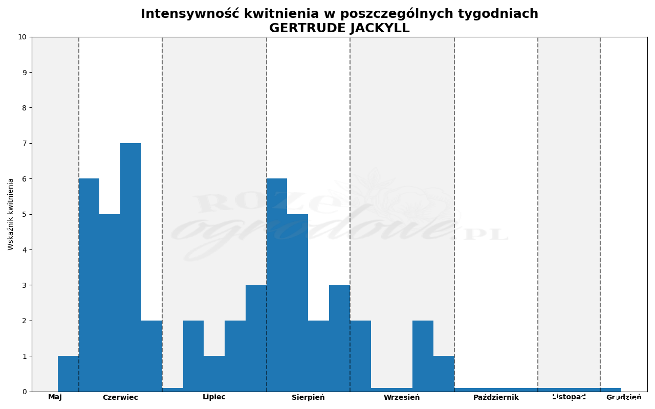Gertrude Jekyll uosabia wszystko, co urzeka nas w róż angielskich. Pomimo upływu lat od jej debiutu na rynku, wciąż cieszy się ogromnym powodzeniem, a jej urok nie mija. To niezwykła róża, która zdobyła serca wielu ogrodników z kilku powodów.