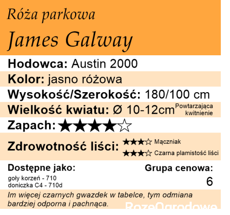 James Galway to piękna róża krzaczasta, którą można prowadzić również jako różę pnącą.