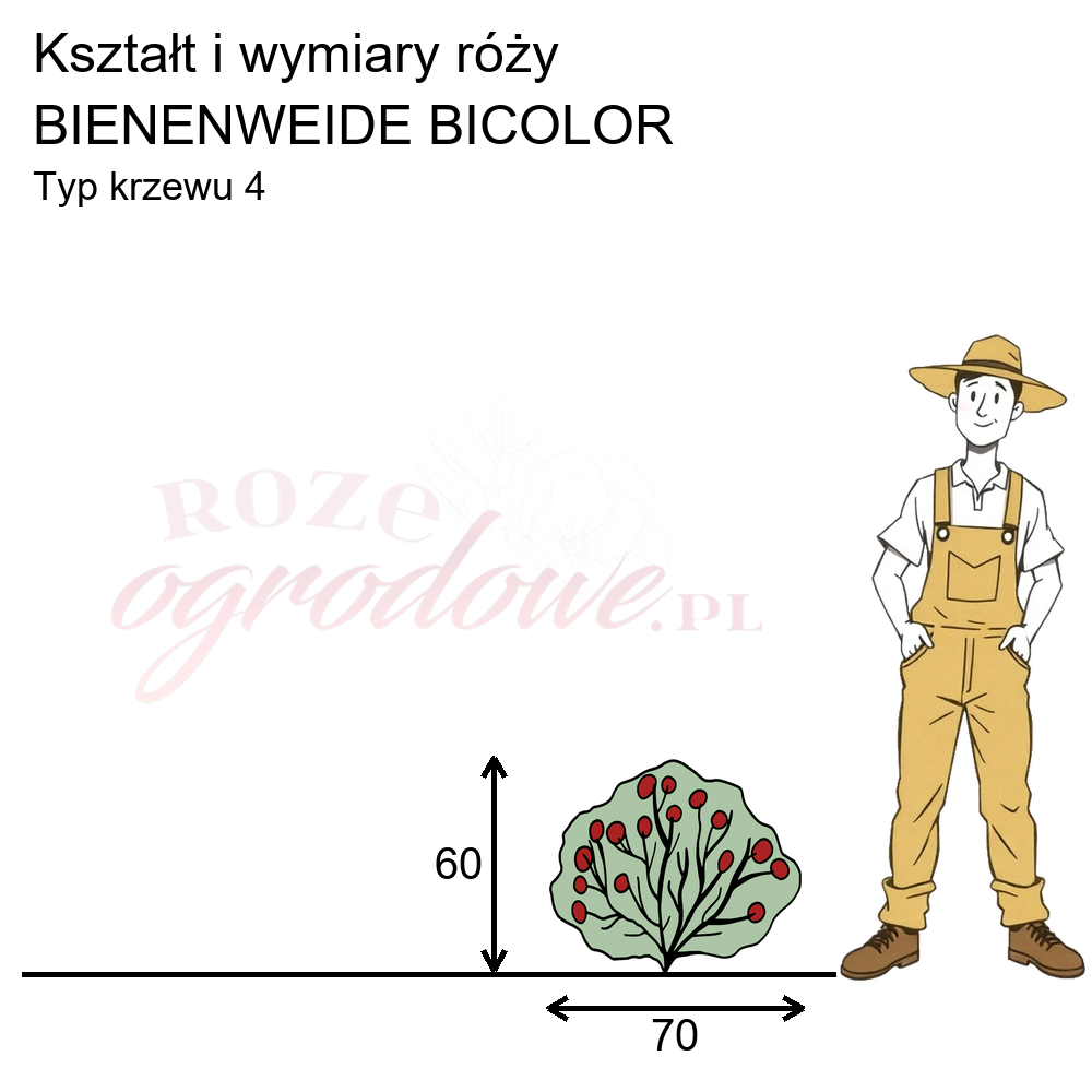Bienenweide Bicolor - niewysoka, kompaktowa róża miniaturowa z modnej serii róż miododajnych o delikatnym zapachu. Doskonale sprawdzi się na obwódki, niewysokie rabaty oraz do donic.