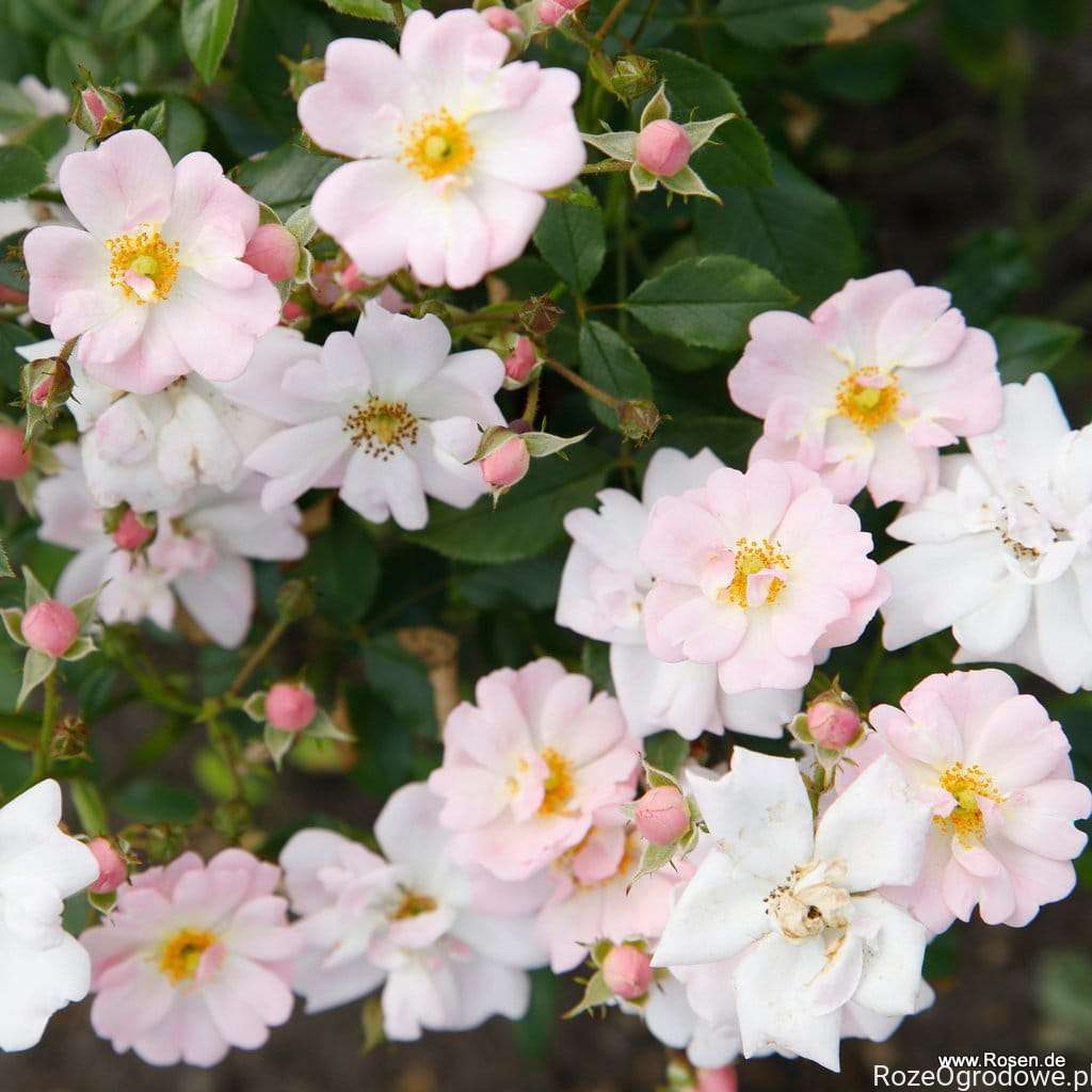 Po drugie, ten harmonijnie rozrastający się krzew pokrywa się niezliczona ilością drobnych kwiatów, które nie są nudne, ponieważ barwa ich jest zróżnicowana. Pąki kwiatowe są lekko różowe. Świeżo rozwijające się kwiaty mają baśniowy, biało- różowy kolor, a kwiaty które kończą kwitnienie są czysto białe. Uroku dopełnia żółty środek pręcików. Obfitość kwitnienia idzie w parze z długością kwitnienia. Krzew po prostu bardzo długo jest dekoracyjny. Przekwitnięte kwiaty same się oczyszczają, a w ich miejsce pojawiają się nowe i nowe pąki kwiatowe, które stopniowo rozwijając się sprawiają, że odmiana ta bardzo długo wygląda atrakcyjnie.