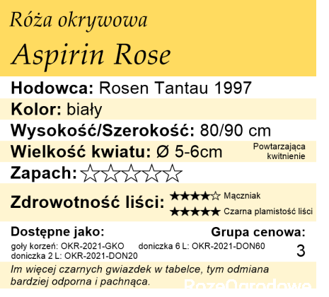 Róża okrywowa ASPIRIN ROSE - goły korzeń klasa B