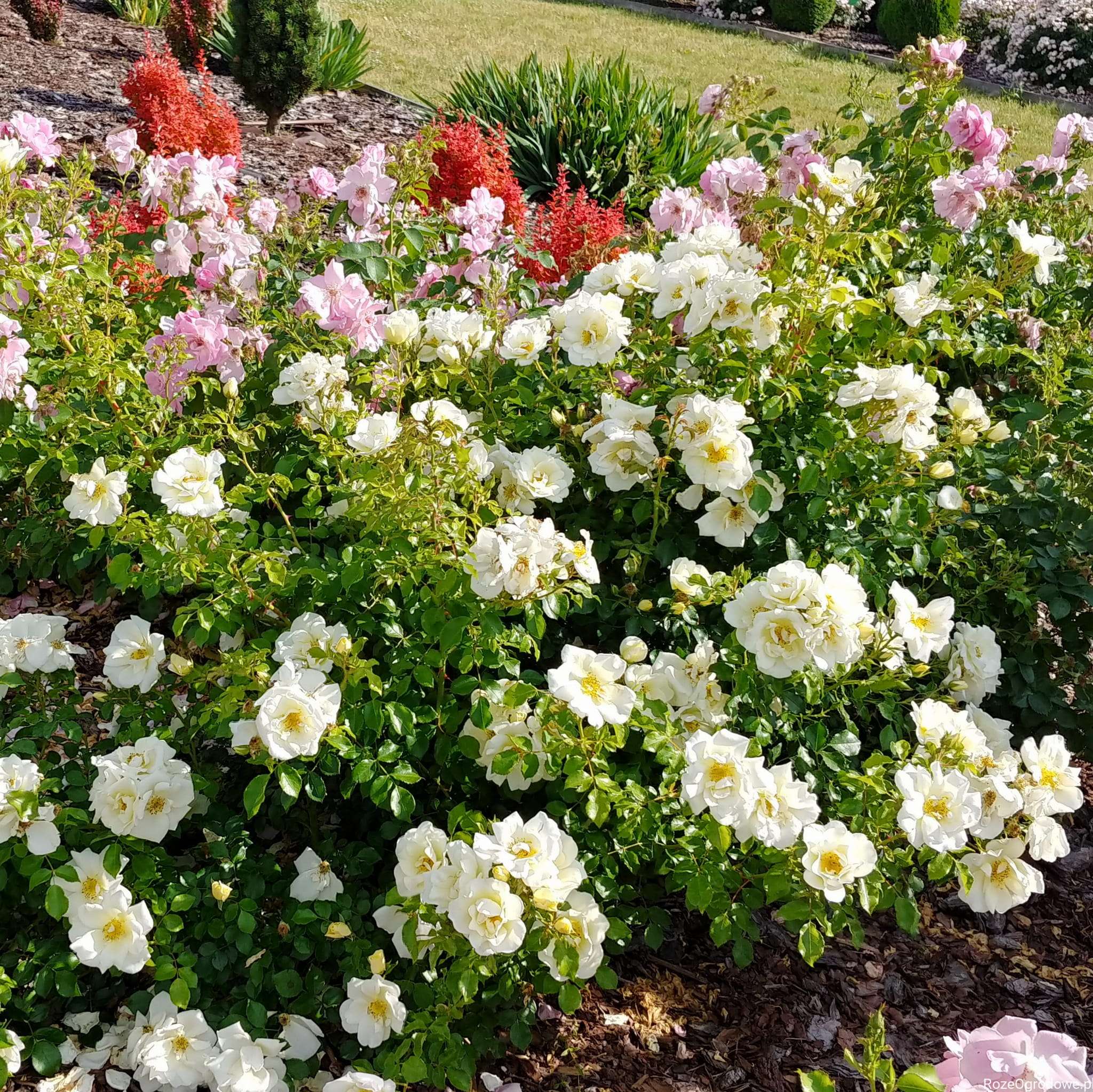 Pokrój jest wyrównany, natomiast nie jest on bardzo zwarty i z tego powodu my zaliczyliśmy ją do róż okrywowych. Dzięki temu, że pędy równomiernie rozkładają się na boki piękny efekt można uzyskać sadząc ją jako róże rabatową w przestrzeni publicznej. W zieleni miejskiej wystarczy, że posadzimy ją w odstępach 60 cm jeden od drugiego dość szybko uzyskamy efekt pokrycia całej powierzchni przez pięknie rozrastające się róże. Należy podkreślić, że do zieleni publicznej nadaje się ona nie tylko ze względu na pokrój i charakter wzrostu ale również ze względu na bardzo dobrą tolerancję co do warunków uprawy, jak również bardzo dobrą zdrowotność liści. Sadzona w ogrodach przydomowych może być traktowana jak róża rabatowa, gdzie stworzy nam kwitnący szpaler o luźnym pokroju, jak również możemy stworzyć większą plamę złożoną z kilku, kilkunastu krzewów, która przez całe lato będzie zachwycać tymi jasnymi, świeżymi kwiatami.