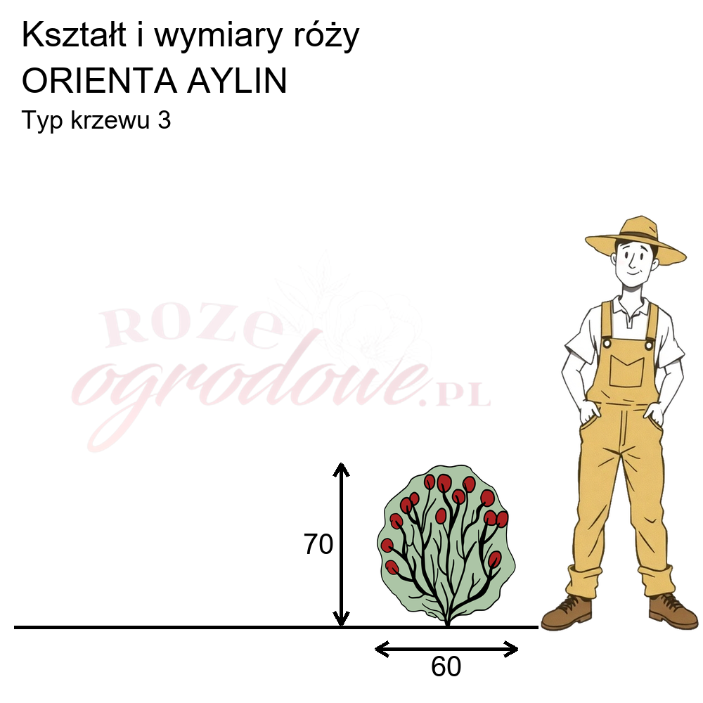 Niewysoki, gęsty krzew o charakterystycznym pokroju przypominającym kopułę, dodaje uroku tej odmianie. Ze względu na kształt Orienta Aylin doskonale prezentuje się z przodu rabaty lub jako niski kwitnący szpaler wzdłuż chodnika. Można się spodziewać równie efektownego wyglądu, gdy roślinę posadzi się w pojemniku, gdzie lekko przewieszone pędy i obfitość kwiatów stanowią ozdobę zasłaniającą jej zdrowe liście.