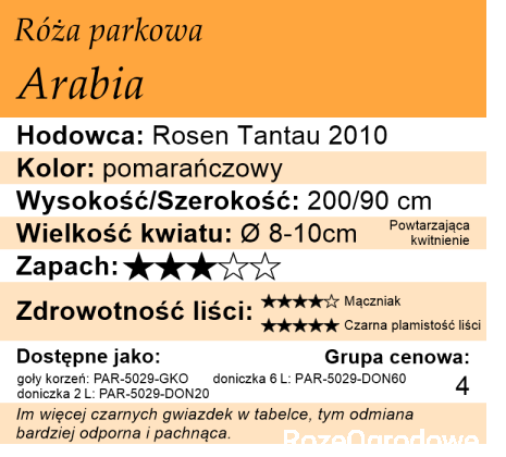 Arabia fenomenalna róża parkowa o nadzwyczajnej zdrowotności i bardzo atrakcyjnej herbacianej barwie. Pełna wigoru i pachnąca.