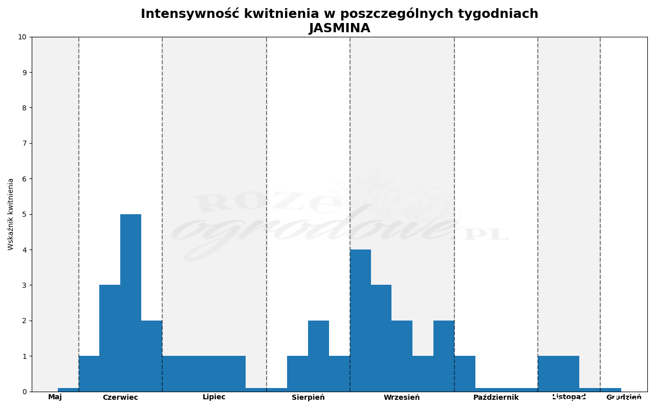 Dzięki swemu nostalgicznemu charkterowi nadaje się do romantycznych ogrodów tworząc niepowtarzalny klimat. Dla ludzi ceniących porządek w ogrodzie pewna wadą może być to, że jest to odmiana smaoczyszcząca. Pamiętaj że na Twoim pięknie wystrzyżonym trawniku rozsypią się biało-różowe płatki. Jeżeli jednak lubisz naturalność w ogrodzie to róża pienna Jasmina jest dla Ciebie dobrym wyborem