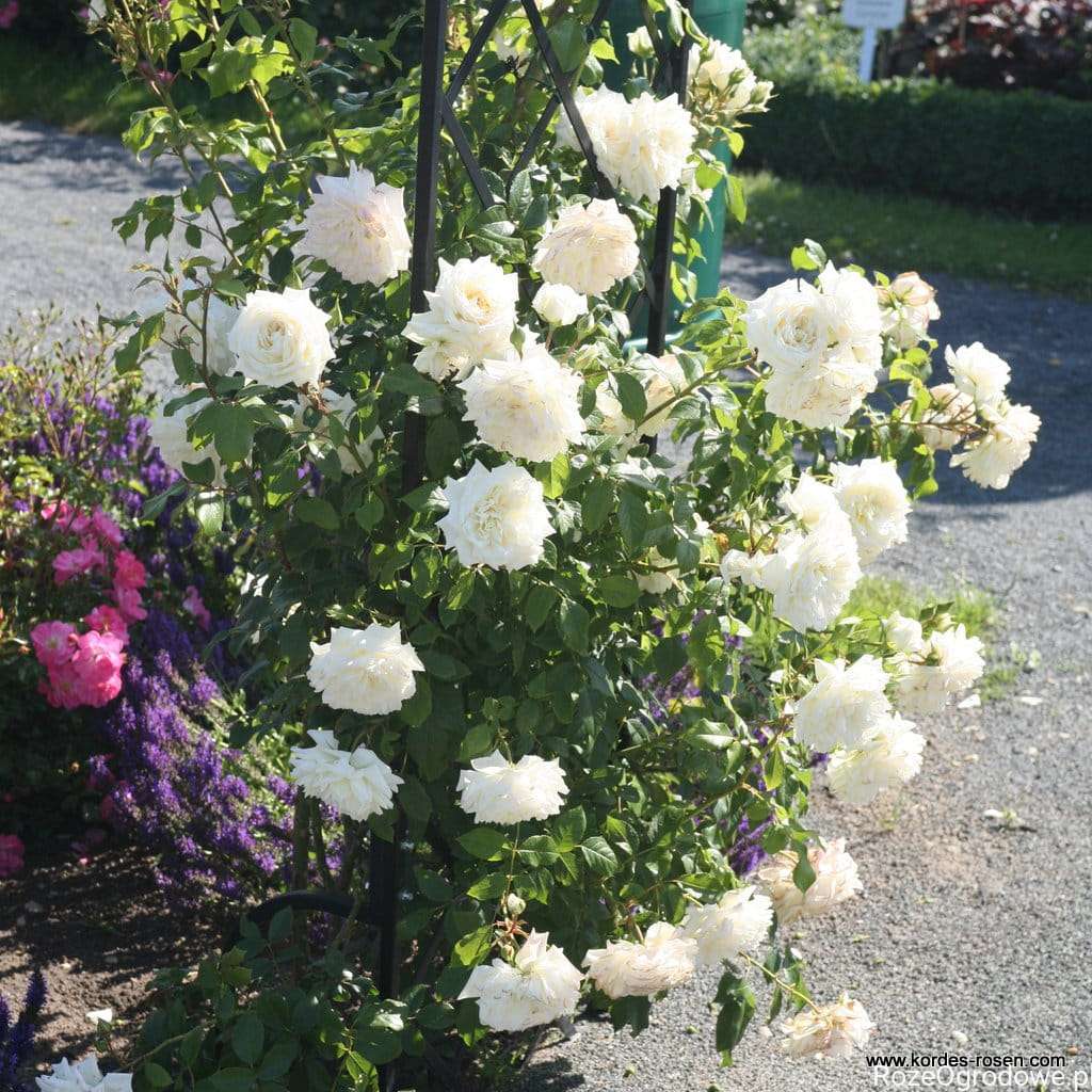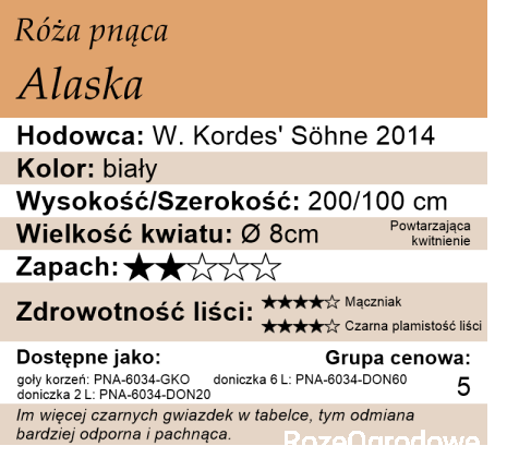 Alaska to biała piękność wśród róż pnących, która przyciąga bardzo pełnymi kwiatami.