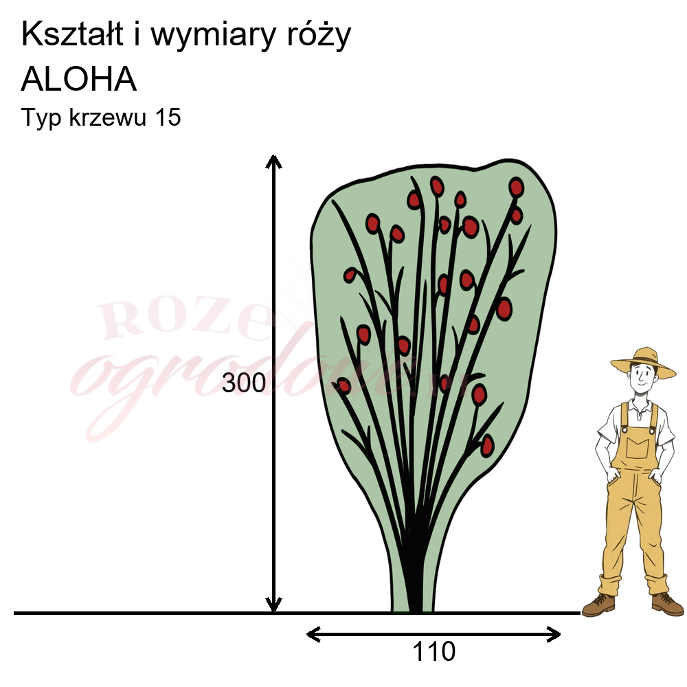 Róża Aloha to typowy Climber dość mocno rosnący, osiągający około 3 m wysokości. Dla wielu pewną wadą będą bardzo kolczaste pędy tej róży, jak również to, że w surowe zimy może nadmarzać.