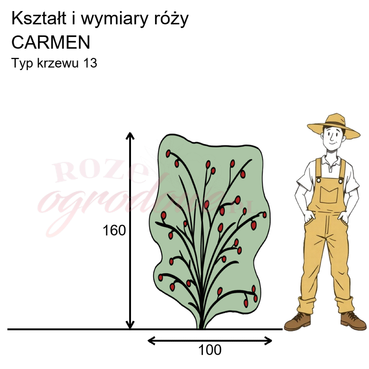 Rysunek przedstawia wymiary i pokrój danej odmiany na podstawie obserwacji 3-letnich krzewów w sezonie 2025 w Więckowicach w gminie Wojnicz.