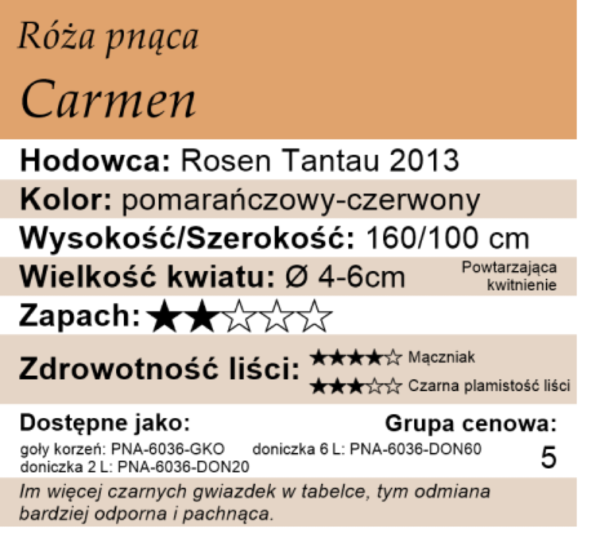 Carmen ma nieduże lecz bardzo pełne i wyraziste kolorystycznie kwiaty o delikatnym zapachu.