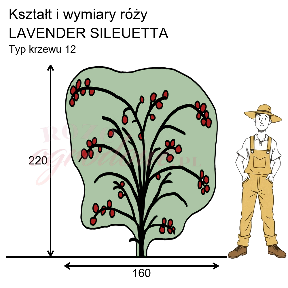 Rysunek przedstawia wymiary i pokrój danej odmiany na podstawie obserwacji 3-letnich krzewów w sezonie 2025 w Więckowicach w gminie Wojnicz.
