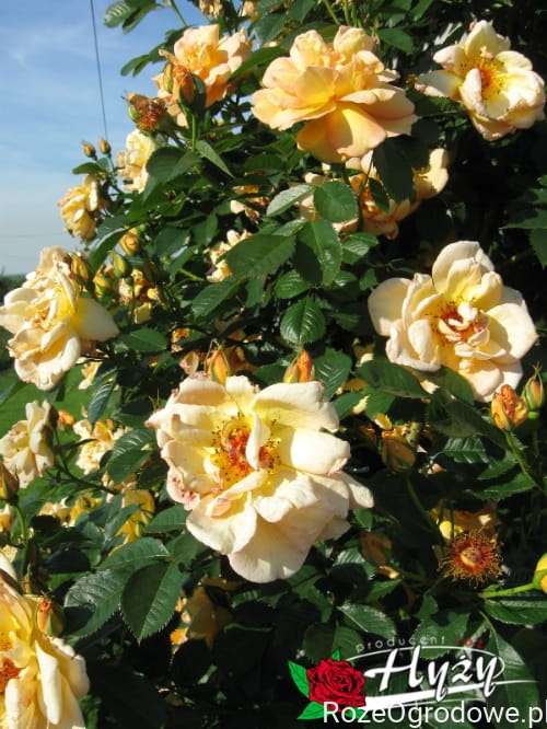 a grube, silne przewieszające się pędy są pokryte mnóstwem ciemnych kolców. Odmiana bardzo zdrowa chociaż przy niesprzyjających warunkach pogodowych jest narażona na czarną plamistość liści i może wymagać opieki. Największą zaletą tej odmiany jest bardzo wczesne kwitnienie. Zaczyna zakwitać jako pierwsza już pod koniec maja. Kwiaty duże, półpełne z widocznymi pręcikami