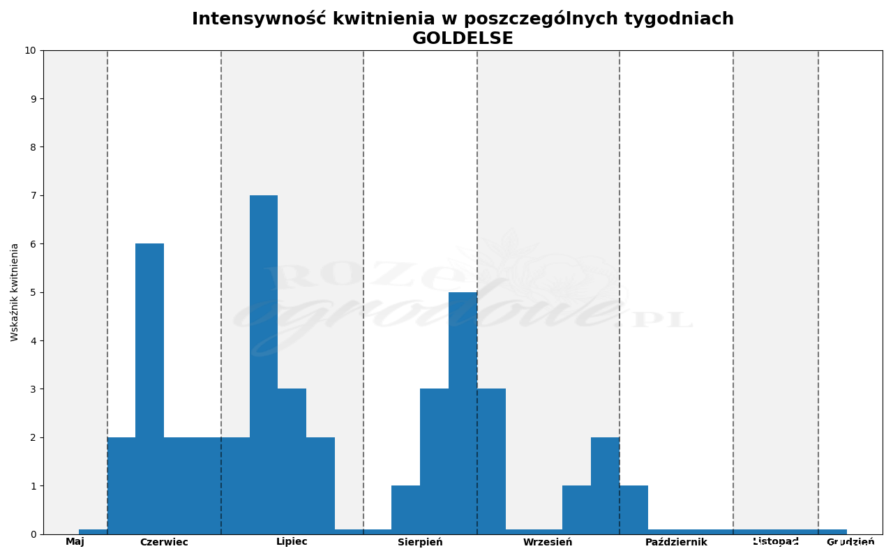 Wykres kwitnienia zrobiony na podstawie obserwacji 3-letnich krzewów w sezonie 2025 w Więckowicach w gminie Wojnicz.