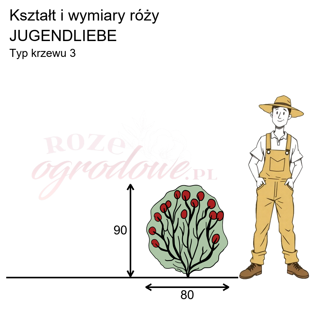 Jugendliebe spełni wymagania osób szukających róż rabatowych o dużych i pełnych kwiatach w tym kolorze, ponieważ poza tą odmianą ciężko znaleźć róże o tych parametrach, równocześnie zachowujące wysoką zdrowotność.