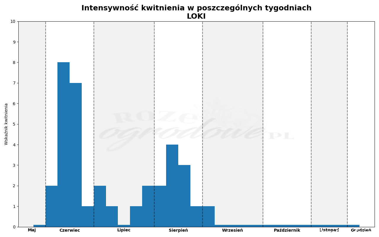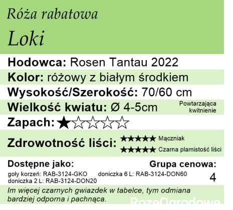 Loki to absolutna nowość z firmy Rosen Tantau i duma tej firmy. Jest to bowiem róża, która łączy ze sobą sprzeczności. Niezwykle delikatna z wyglądu. Nadaje ogrodowi naturalny, lekki wygląd, a jednocześnie jest to odmiana żelazna, której nie straszna ani ostra zima, ani kaprysy pogody, ani choroby grzybowe. Zatem jest to róża z tych prawie bezobsługowych.