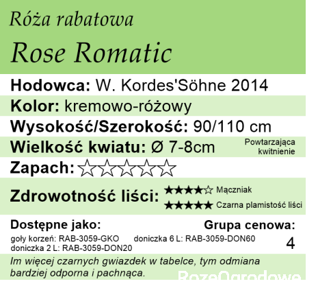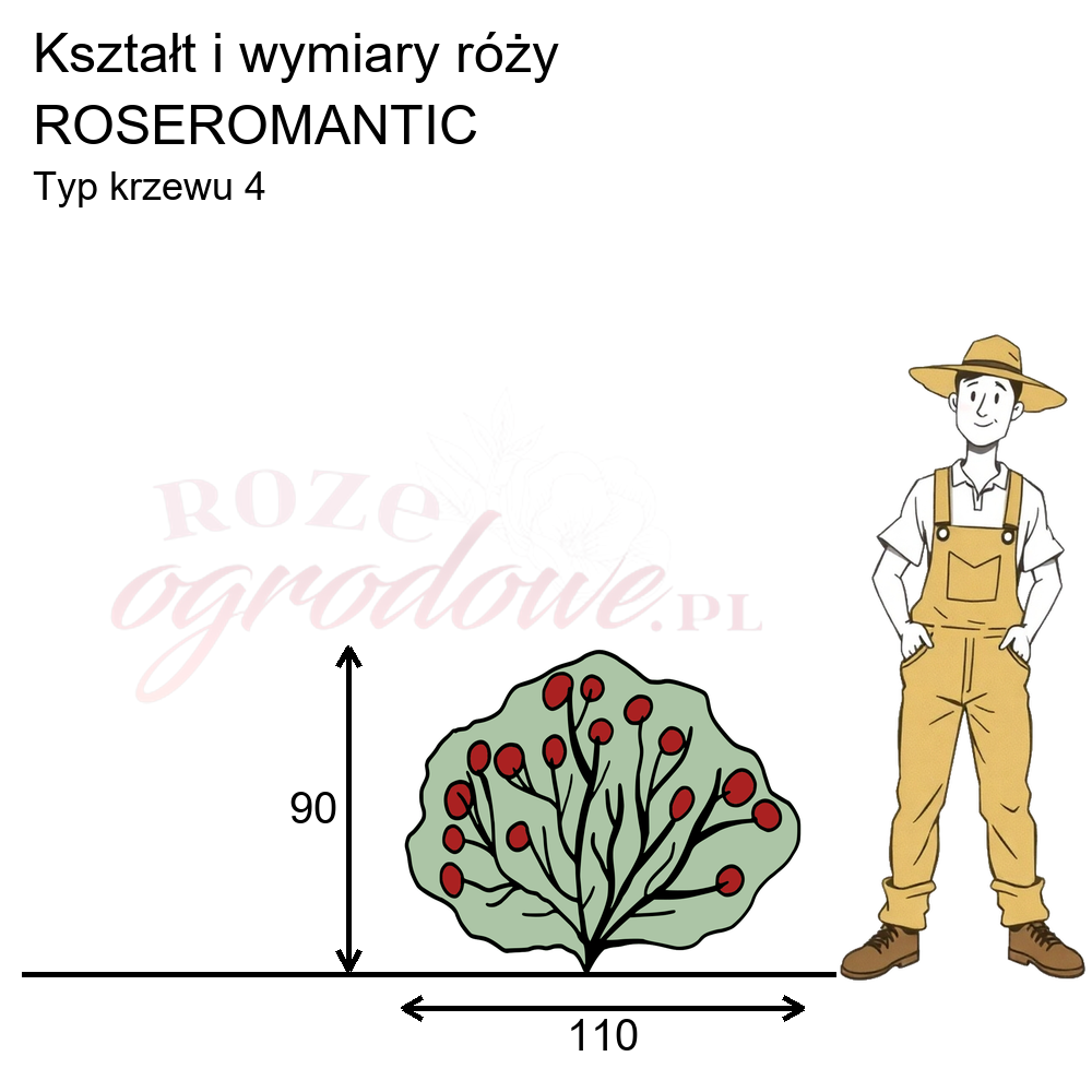Buduje zgrabne, wyrównane i szerokie krzewy. Róża Roseromantic cechuje się wyjątkową odpornością na choroby.