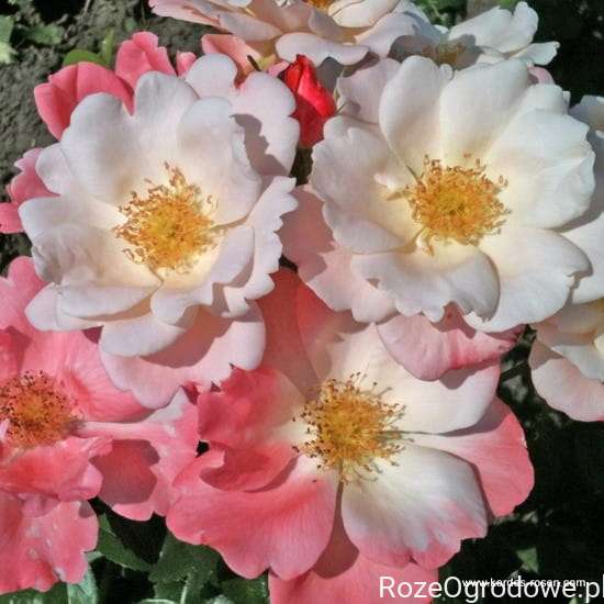 Kwiaty biało różowe z widocznymi żółtymi pręcikami przechodzą z czasem w różowo malinowy kolor.