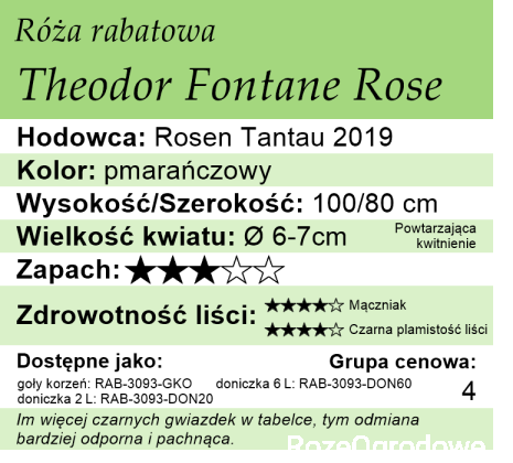 Theodor Fontane Rose jest to nowa róża rabatowa o niesamowicie trwałych kwiatach o ciepłej barwie. Idealna dla wszystkich, którzy rozpoczynają swą przygodę z różami i oczekują od róży dobrego zdrowia oraz obfitego i długiego kwitnienia.