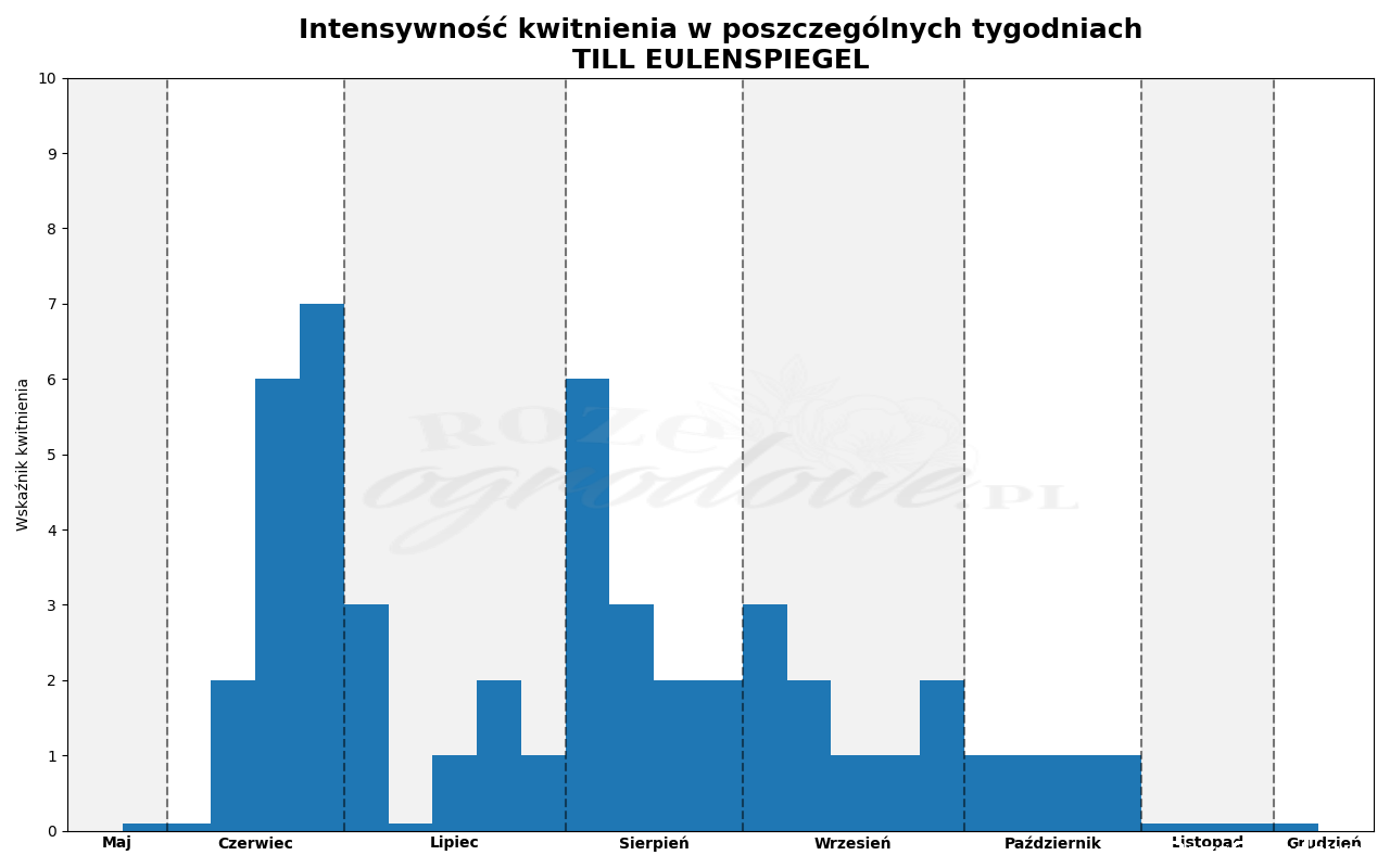 Wprowadzona na rynek w 2017 roku przez firmę Kordes, która nazwała tak tę różę na cześć bajkowej postaci Till Eulenspiegel (Dyl Sowizdrzał). Jest to postać złośliwego psotnika i figlarza, będącego uosobieniem mądrości ludowej oraz rubasznego humoru, wywodząca się z folkloru północnych Niemiec.