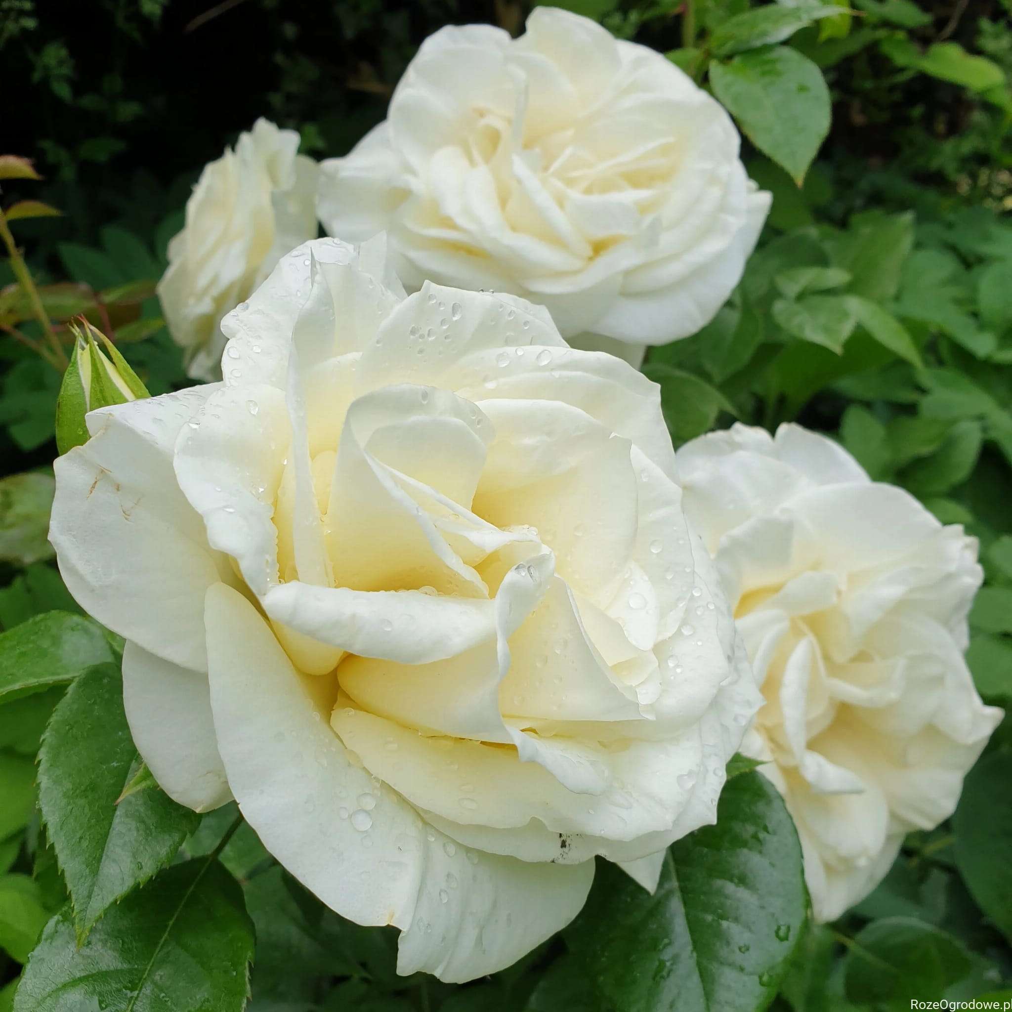 Grażka - róża typu nowoczesnego mieszańca herbatniego/grandiflora, wielkokwiatowa, charakteryzująca się rzadko spotykaną formą. Kwiat bardzo duży o średnicy do 15cm w kolorze biało-kremowym. Ze zwartego pąka rozwija się piękny, pofalowany kwiat. Wnętrze kwiatu jest osłonięte, przez co róża długo wygląda świeżo i dobrze.